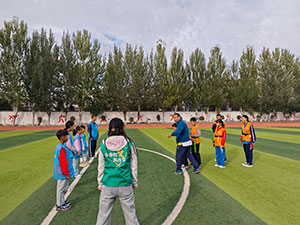 在教练的带领下,30个孩子、3名工作人员以及1名志愿者在阳光下奔跑在操场上,运动使人快乐,每个孩子眼里有光、身上有汗、脚下有力!