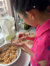 小馨放假期间,由于三叔较忙,常常自己一个人在家,靠外卖填肚子。了解到情况后,工作人员和志愿者自带食材,到小馨家和她一起做饭,炖肉、烩菜、包子等样样俱全,特意额外多做了一些冷冻到冰箱,以便小馨可以自己热着吃。