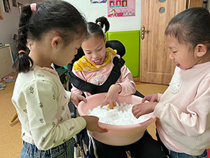 萱萱通过近期系统而有趣的拓展,“跳房子”和“钻滚筒” 不再仅仅是两个游戏,而是变成了一个可动态调整的康复训练平台。在保育员妈妈充满爱和专业性的引导下,孩子能在欢乐中自然提升,这种“生活化康复”正是最理想、最有效的儿童能力发展模式。