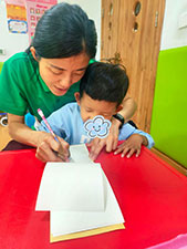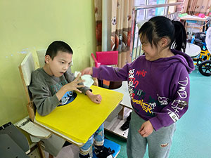 规律的生活习惯,青青慢慢学会了自己穿脱衣服、鞋袜,也能看到其他小伙伴的需求,帮忙拿纸巾擦口水,跟着保育员妈妈晾晒衣服。看到青青在自理能力上的进步,真的为她感到高兴!从“为自己做”到可以“帮助他人”,青青的自信心也提高了很多。