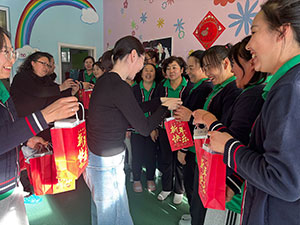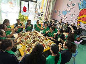 保育员妈妈们和孩子们一起欢庆佳节,孩子们最期待,妈妈们和孩子们一起做饭,有吃有玩还有礼物。每个孩子都收到自己的心愿礼物:那一张张纯真的小脸瞬间绽放出灿烂的笑容。