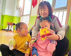 欢迎建党加入我们的大家庭,他可以自如地走和跑,会自己上下楼梯,也可以在院里的特殊幼儿园里参与日常活动;通过观察测评,孩子目前在语言表达、常识认知和自理能力方面还比较欠缺,只会叫爸爸妈妈,词汇量不多,我们会在日常护理中给他更多的机会学习和锻炼。